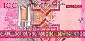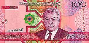 | 100 manat | 150x75 | Saparmyrat Niýazowyň şekili | Türkmenistanyň Merkezi bankynyň binasy | 01.01.2010 |
