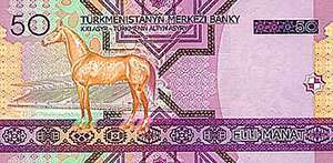 | 50 manat | 145x72 | Saparmyrat Niýazowyň şekili | Ýnardag Ahalteke aty | 01.01.2010 |