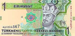 | 1 manat | 120x60 | Togrul beg Türkmeniň şekili | Beýik Saparmyrat Türkmenbaşynyň Milli medeniýet merkezi |