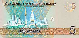 | 5 manat | 126x63 | Soltan Sanjar Türkmeniň şekili | Aşgabat şäheriniň panoramasy |