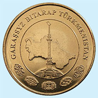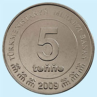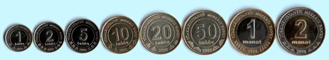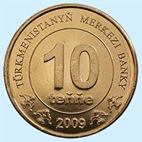 | 10 teňňe | Tegelek | NiBrass ( mis we nikel ) | 22 | 1,85 | 5 | Tekiz, Zire-zire |