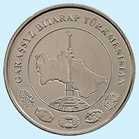 | 1 manat | Tegelek | Içki tegelek CuNi (mis we nikel) Daşky halka NiBr (mis, sink we nikel) |