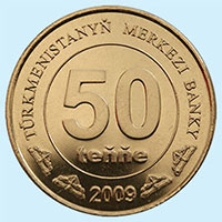 | 50 teňňe | Tegelek | NiBrass ( mis we nikel ) | 26 | 2,03 | 8 | Zire-zire |