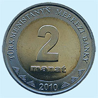 | 2 manat | Tegelek | Içki tegelek NiBr (mis, sink we nikel) Daşky halka CuNi (mis we nikel) |