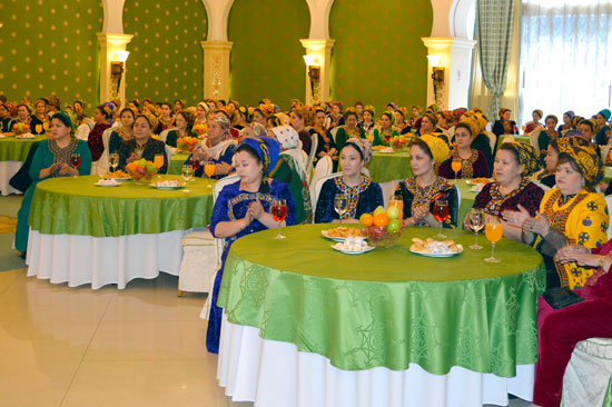 Halkara zenanlar güni bolan 8-nji mart baýramçylygy mynasybetli 2014-nji ýylyň 6-njy martynda Türkmenistanyň Merkezi bankynyň, Türkmenistanyň Zenanlar birleşiginiň Merkezi Geňeşiniň hem-de Aşgabat şäher Medeniýet müdirliginiň bilelikde gurnamagynda Aşgabat şäherinde ýerleşýän «Toý mekany» dynç alyş merkezinde «Türkmen zenany – gözelligiň nyşany» atly baýramçylyk dabarasy geçirildi. Bu dabara kümüş saçly enelermiz, jemgyýetçilik guramalarynyň wekilleri we bank ulgamynda zähmet çekýän zenanlar gatnaşdylar. Baýramçylyk dabarasynda belli we ýaş estrada aýdymçylary watanymyzy, bagtyýarlyk döwrümizi we gelin-gyzlarymyzy wasp edýän aýdymlary aýtdylar. Şeýle-de dabaranyň dowamynda «Näzli» tans toparynyň tanslaryna hem-de Alp Arslan teatrynyň artistleriniň gysga sahna oýnunlaryna tomaşa edildi.